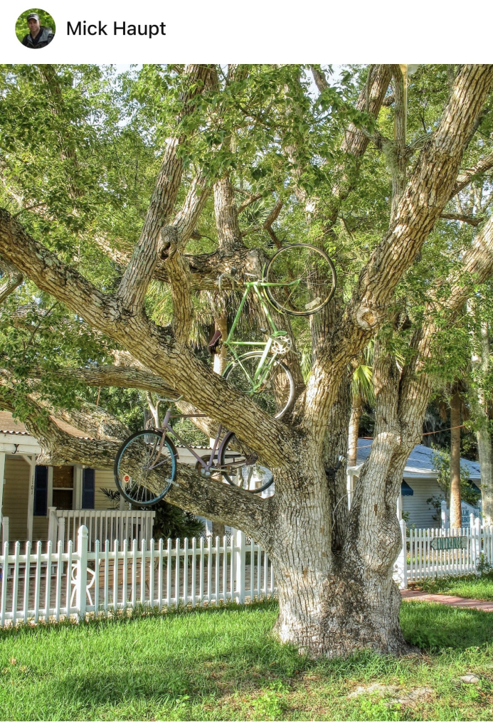‘I mean, I don’t really get how we got them up there,’ John said, shielding his eyes from the sun. Did it have to be that bright? Trouble was, it wasn’t his only problem. Getting the bike out of the tree.