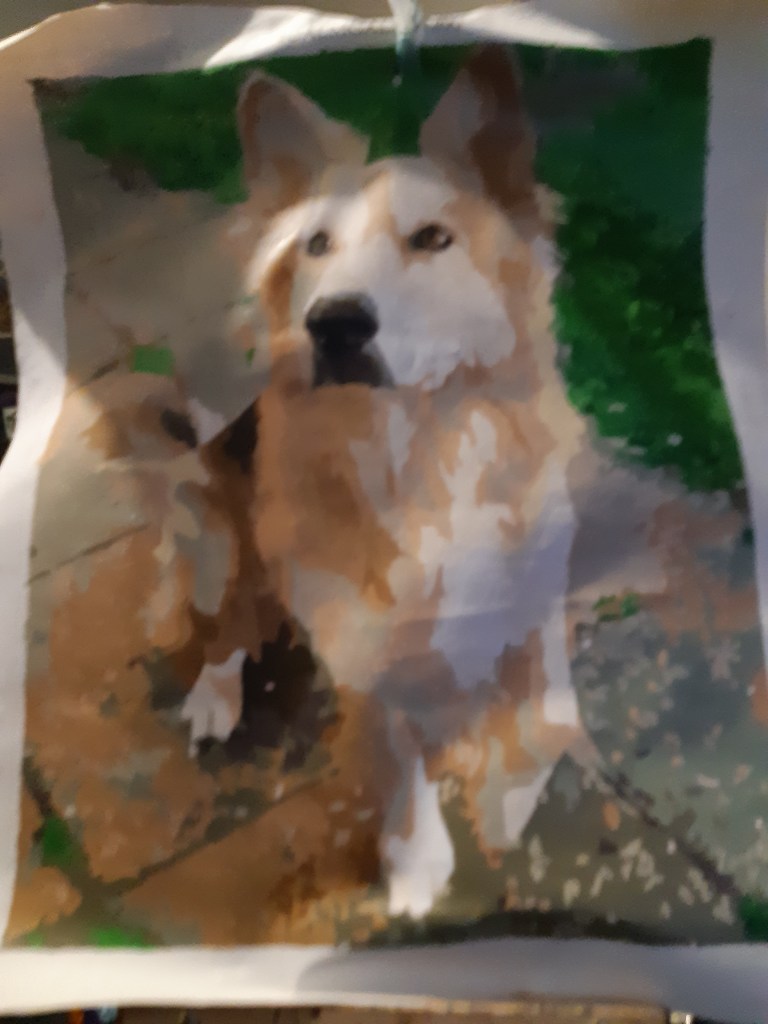 Scamp, my first dog, died about five years ago. He was a German Shephard, mongrel cross. Unique, he was often called a wolf. He was quite small, taking after his mum, with golden eyes. We got Titan a few months afterwards. A cross between a Rottweiler and a German Shepard. He is mad, that’s for sure, but always loyal to me. We are getting my brother-in-laws Jack Russell, when we can get down to collect her. My daughter’s dog Luna, a breed I can never remember, a fluffy dog is Titan’s best friend.